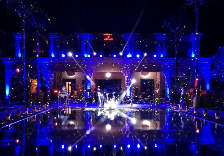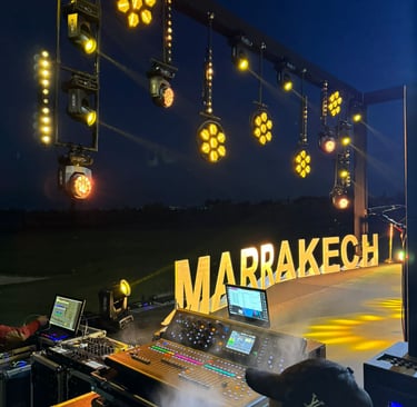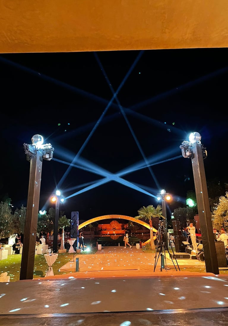 Depuis 2018, MB FOR EVENT propose des solutions d'éclairage de haute qualité pour illuminer vos événements à travers le Maroc, notamment à Marrakech, Casablanca, Agadir, Essaouira et Tanger. Nous offrons des configurations sur mesure adaptées à tous types d'événements, qu’il s’agisse de créer une ambiance intimiste pour des discours ou d’assurer des installations lumineuses spectaculaires pour des concerts, des performances de DJ, ou encore des événements d'entreprise.